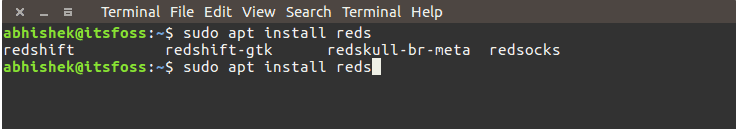 以上实例我们输入来 reds,然后按下 Tab 键,输出来四个相关的包。