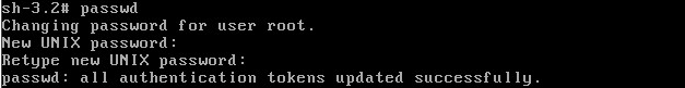 此时已经进入到单用户模式了,你可以更改root密码了。更密码的命令为 passwd