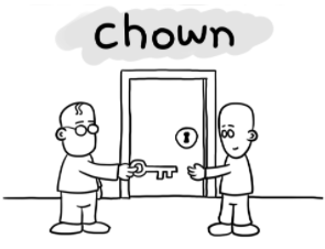 下图中通过 chown 来授权用户,通过 chmod 为用户设置可以开门的权限。